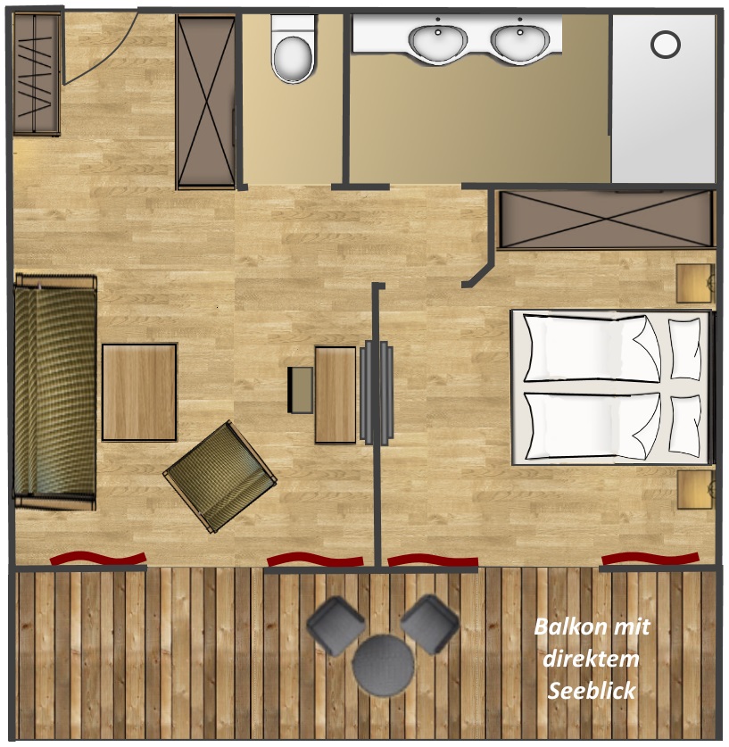 - Schreibtisch • 2x Flat-TV • Telefon • Zimmersafe • Kühlschrank • Balkon mit direktem Seeblick